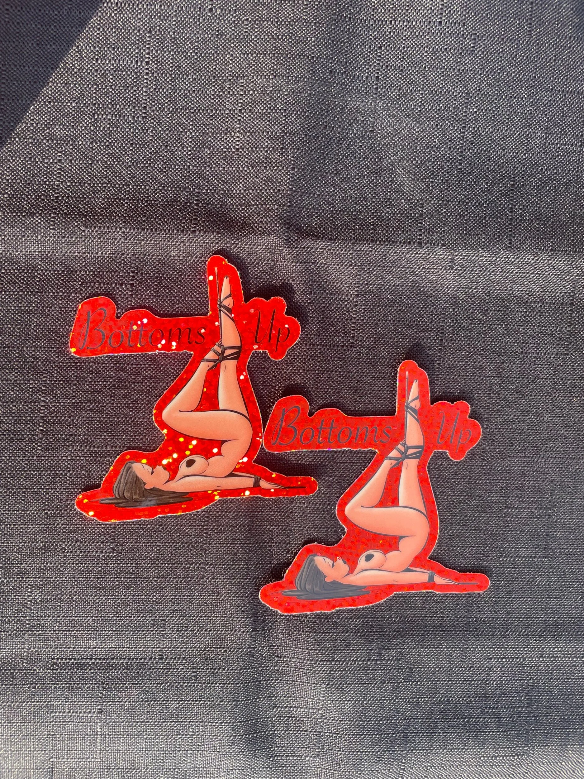 Shop › Bottoms Up Stickers- Pack of 5 Image 1 of 1 Bottoms Up Stickers- Pack of 5 $15.00 Pack of 5 Holographic Bottoms up Bondage Stickers.😈🖤💋 Quantity: Add To Cart Added! Pack of 5 Holographic Bottoms up Bondage Stickers.😈🖤💋